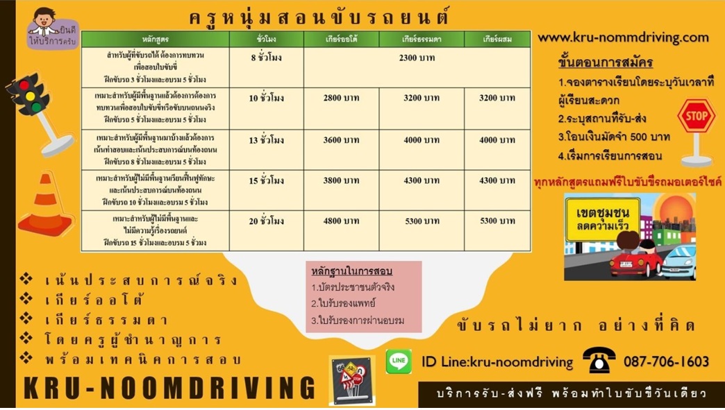 หรือ Add line สอบถามได้ที่ ID line: kru-noomdriving