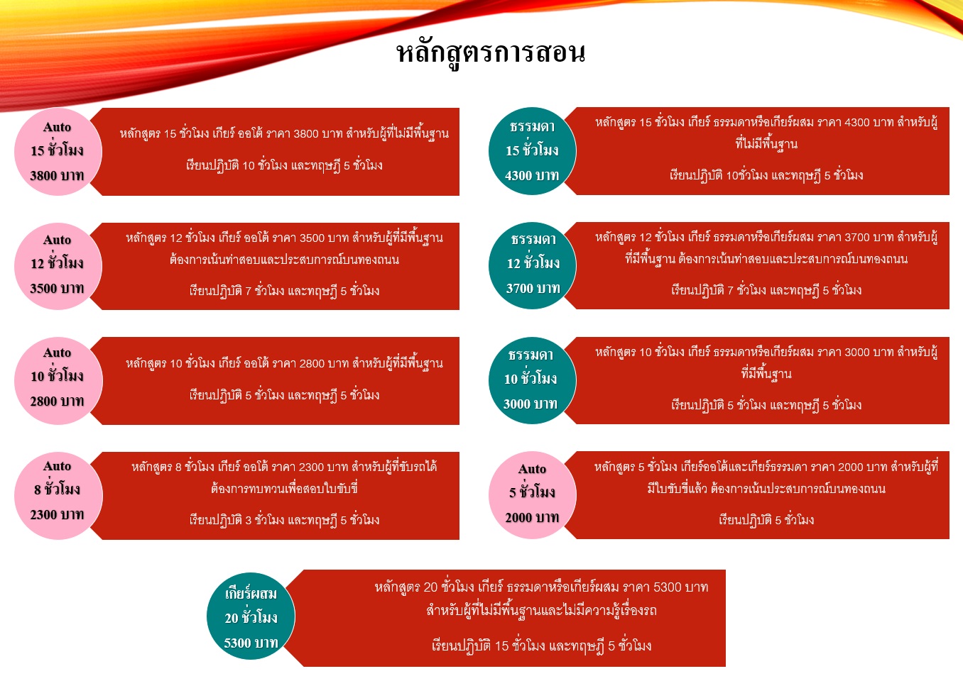 5 ชั่วโมง ราคา 2,300 บาท (เกียร์ธรรมดา)